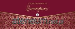 Kartka z okazji Emerytury z serii Passion Moments PM-410 Każda kartka w kolekcji Passion Moments to małe arcydzieło - wyjątkowe i niepowtarzalne, piękne wizualnie. Kartki PM są bardzo bogato zdobione, a jednocześnie skromne i stylowe, cały efekt tkwi w detalach i doskonałym wykonaniu. W zależności od wzoru, na kartkach znajdują się dekoracje ze złotej, srebrnej, perłowej lub holograficznej folii, a także doklejki biżuteryjne, kokardki, laserowe wycięcia, wstążeczki i inne dodatki. Wnętrze karnetu to zawsze atrakcyjna grafika i tekst życzeń. Kartki mają w komplecie dopasowaną kopertę. Cechy szczególne: zdobienie: przynajmniej dwie folie (metaliczne/perłowe/holograficzne), elementy doklejane, wycięcia laserowe, wstążeczki - w zależności od wzoru, wnętrze: z delikatną grafiką, wyjątkowe życzenia w środku, w komplecie: dopasowana kolorystycznie koperta, wymiary karnetu po złożeniu: 11,4 x 21,5 cm. okazja: Emerytura