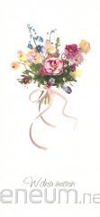 Kartka zawiera życzenia. W zestawie znajduje się koperta, kolorystycznie uzupełniająca się z kartką.