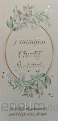 Kartka jest bogato i różnorodnie zdobiona (zależnie od wzoru: metaliczna folia, lakier perłowy,