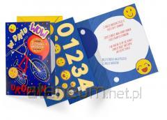 Kartka jest bogato i różnorodnie zdobiona (zależnie od wzoru: metaliczna folia, lakier perłowy,