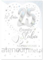 Kartka jest bogato i różnorodnie zdobiona (zależnie od wzoru: metaliczna folia, lakier perłowy, brokat, przyklejone elementy 3D - wypukłe wstawki papierowe, elementy biżuteryjne, tłoczenia). Kartka zawiera życzenia i kolorowy środek. W zestawie znajduje się koperta, kolorystycznie uzupełniająca się z kartką. Format złożonej kartki: 13x19 cm.