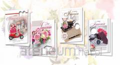 Kartka jest bogato i różnorodnie zdobiona (zależnie od wzoru: metaliczna folia, lakier perłowy,