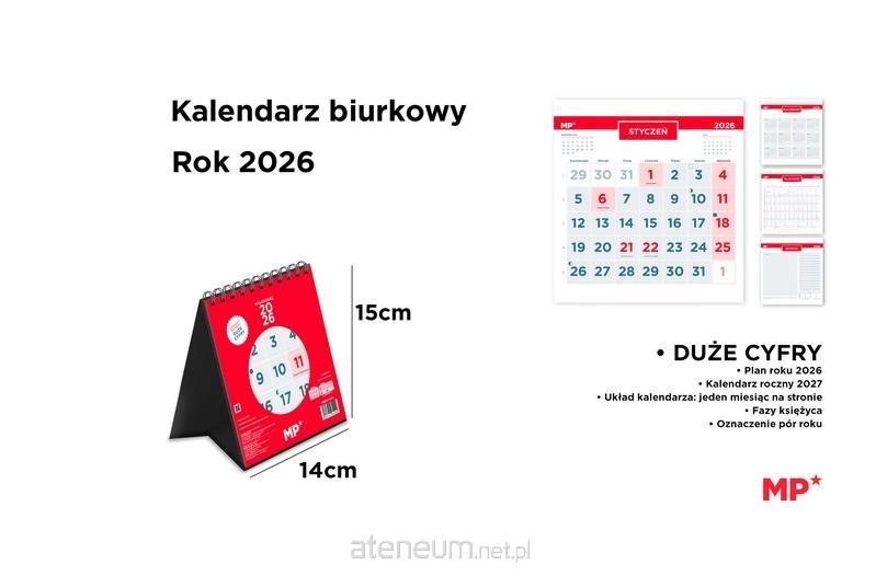 Kalendarz 2026 biurkowy 14x15cm czerwony