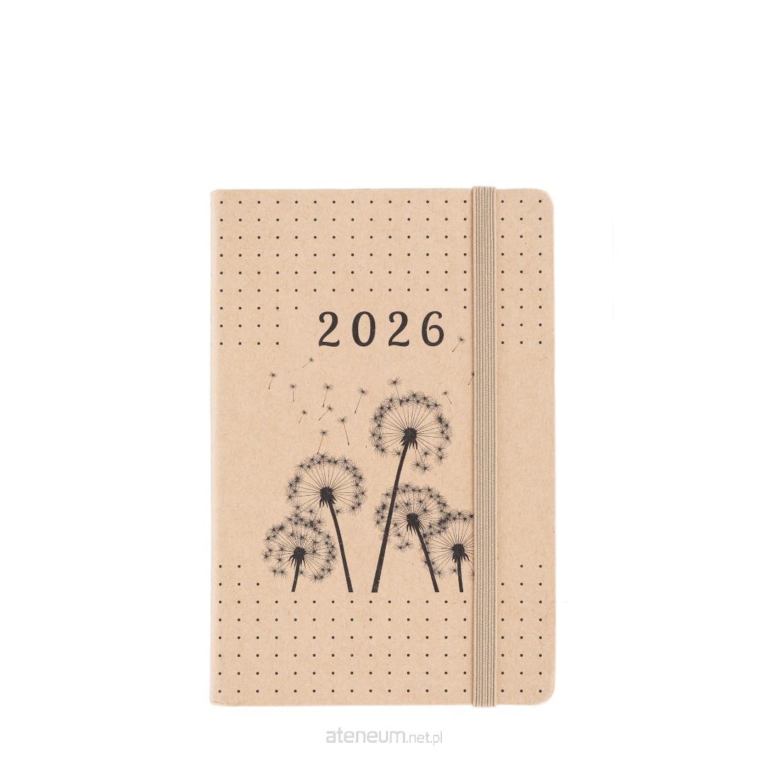 blok: 140x205 mm, 144 strony, papier 64g/m2 kremowy, druk 2 kolory, tasiemka, blok kalendarza szyty nićmi