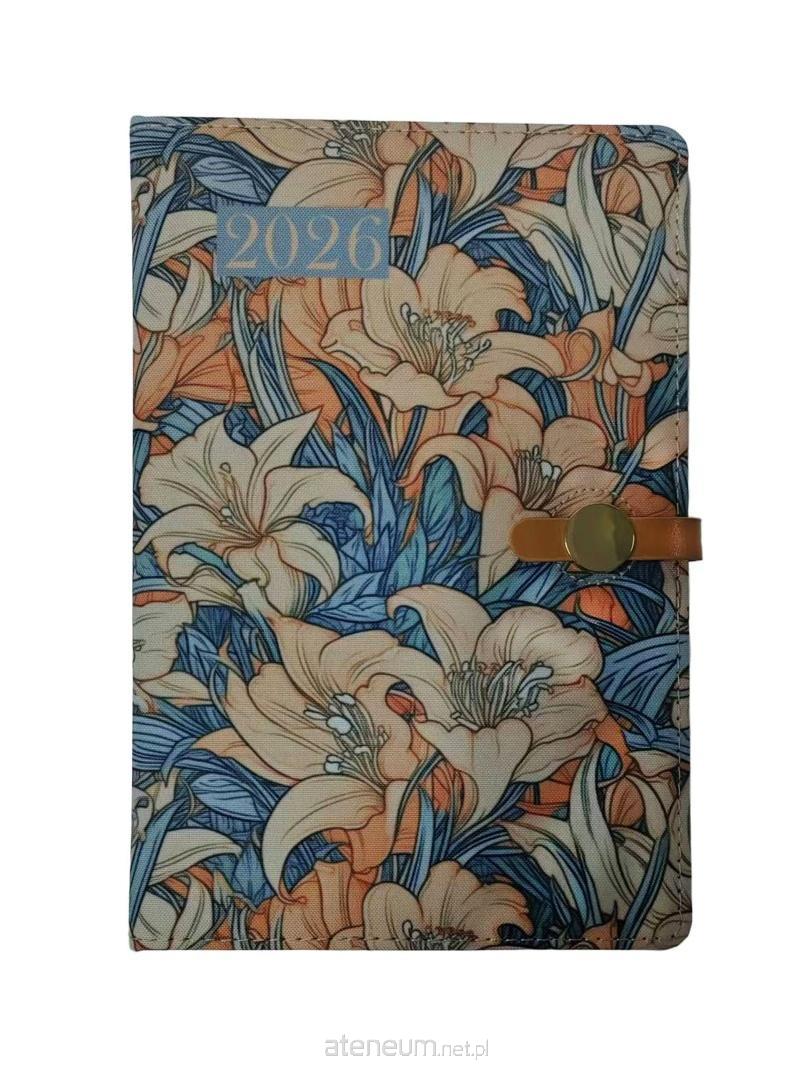 blok: 140x205 mm, 336 stron, papier 64g/m2 biały, blok kalendarza szyty nićmi, tasiemka, ozdobne wklejki, podwójna kieszonka na tylnej wklejce