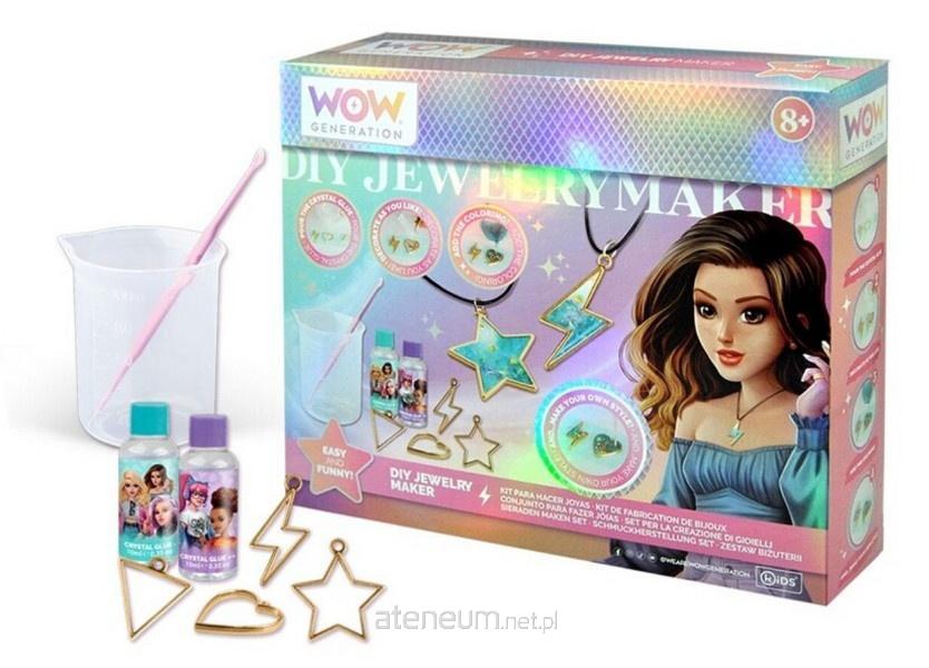 Zestaw do tworzenia biżuterii WoW Generation od Kids Euroswan to uroczy zestaw dla dziewczynek, zawierający wszystkie niezbędne elementy do stworzenia pięknej biżuterii. W zestawie znajdziemy 4 formy w kształcie WOW do tworzenia biżuterii, 2 słoiczki kleju kryształowego, kubek z miarką, pałeczkę do mieszania, puder z brokatem, miseczkę na kolor, wodoodporną tacę, wodoodporne rękawice oraz elementy dekoracyjne. Zabawa polega na własnorę
