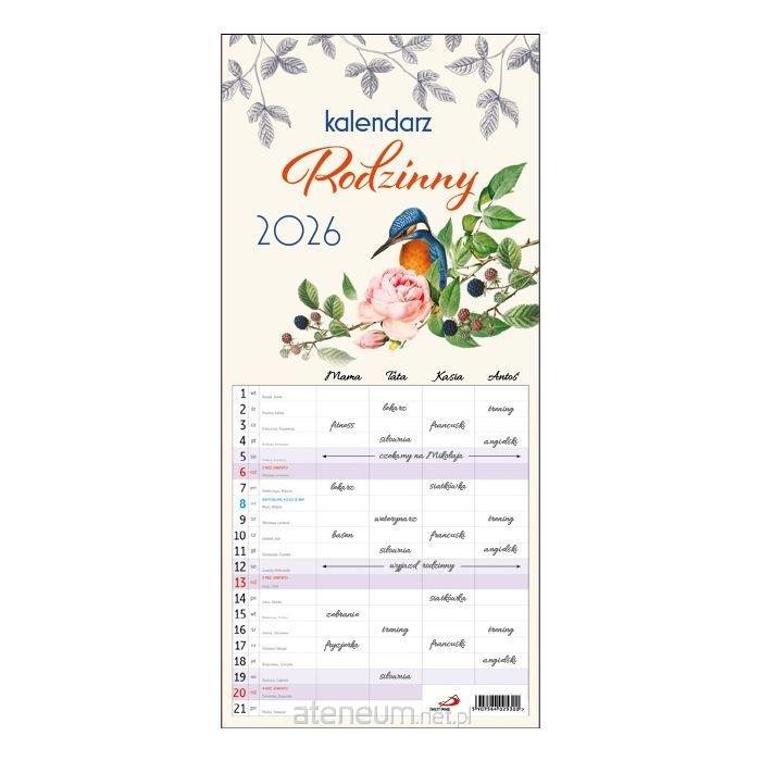 Kalendarz ma wymiary 22,2 cm x 48,5 cm. Podobny kalendarz dla rodzin możesz kupić również w formacie dużym oraz mini.