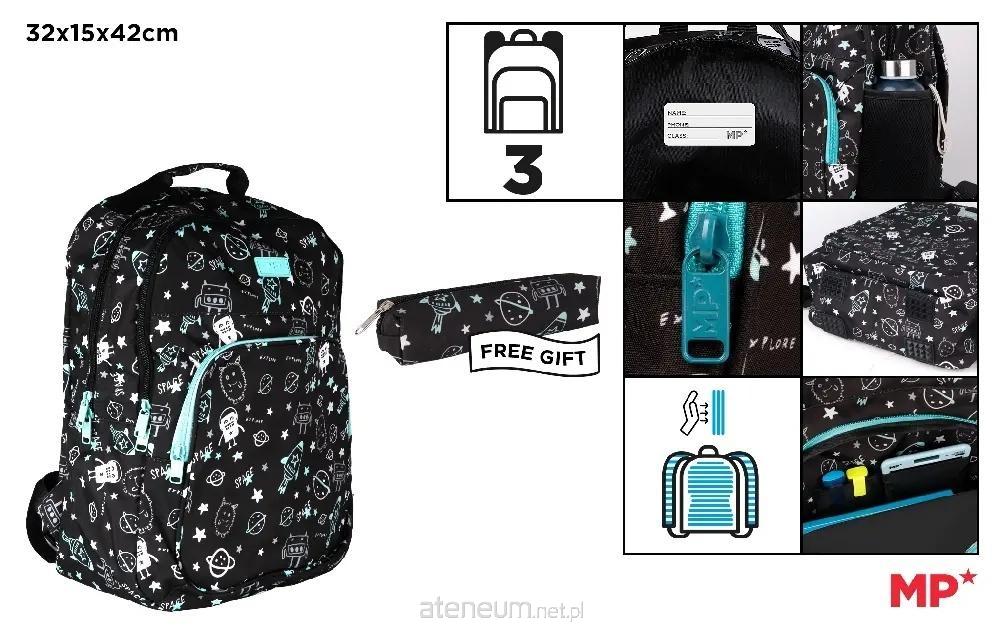Plecak czterokomorowy 30x16x42cm + piórnik