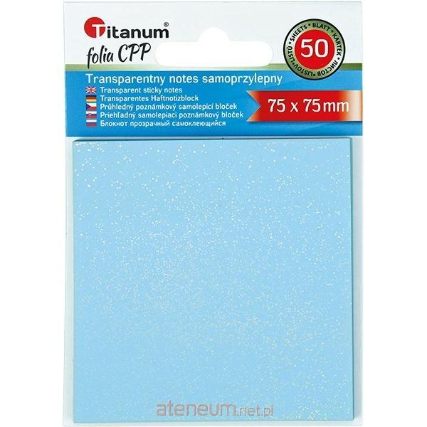 Notes samoprzylepny transparentny 75x75mm z folii CPP z mieniącym się wykończeniem 50 karteczek błękitne