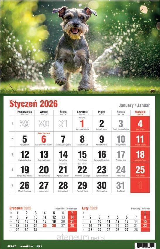 Kalendarz 2026 trójdzielny główka płaska Koliber