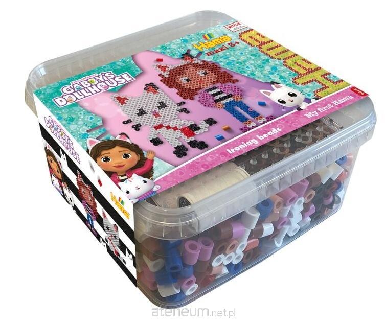 Ok. 900 koralików, 1 duża przezroczysta kwadratowa tablica perforowana nr 8214, 1 sznurek, kolorowy arkusz z nadrukowanym wzorem, instrukcja i papier do prasowania.