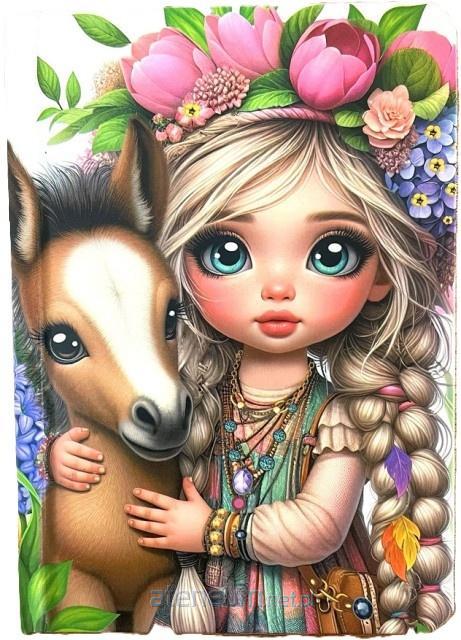 Notatnik ozdobny A6 N9823 Dziewczynka z koniem 64 stron gładki TW