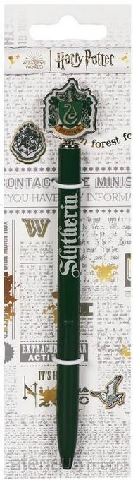 Metalowy długopis 2D - Slytherin - Harry Potter to wyjątkowy gadżet, który już na pierwszy rzut oka przyciąga uwagę fanów świata czarodziejów. Wykonany z metalu, pokryty lakierem w charakterystycznym zielonym odcieniu i opatrzony napisem "Slytherin", subtelnie przypomina o domie, którego symbolem jest wąż - a ten węże pojawia się również w formie srebrnego toppera przedstawiającego herb tej szkoły magii. Trwała konstrukcja w połączeniu z eleganckim designem sprawia, że długopis doskonale spełnia funkcję zarówno użytkową, jak i kolekcjonerską.