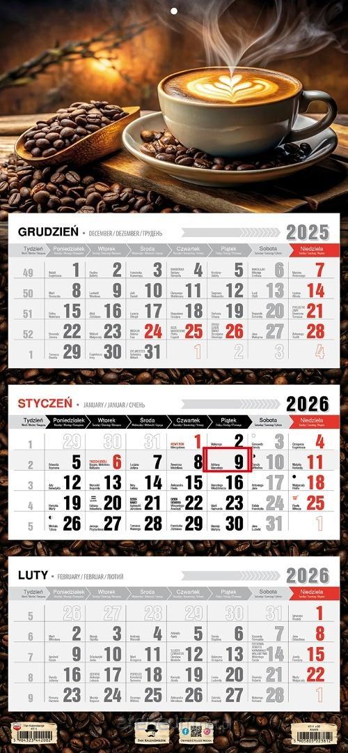 Kalendarz 2026 TRÓJDZIELNY PŁASKA GŁÓWKA. Format 315/680mm. Trzy komplety klasycznych kalendariów z przesuwnym okienkiem. Główka wypukła z otworem wierconym. Dodatkowo nazwy miesiąca i dni tygodnia w języku Ukraińskim, Angielskim i Niemieckim. Kalendarium dodatkowo zawiera fazy księżyca i znaki zodiaku. Dużo miejsca do notowania, czytelne duże litery i cyfry. Nowoczesne i klasyczne wzornictwo, dopracowane wzory, czytelne kalendarium. Praktyczny i elegancki kalendarz który sprawdzi się zarówno w domu, biurze jak i innych pomieszczeniach.