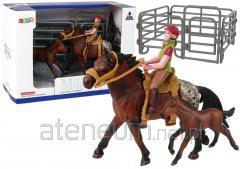 Koń z jeźdzcem, źrebakiem i zagrodą