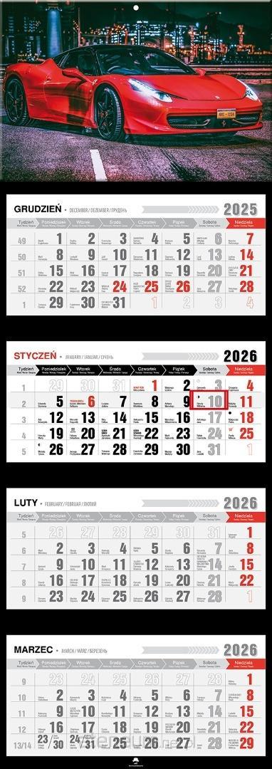 Kalendarz 2026 CZTERODZIELNY/ CZTEROMIESIĘCZNY /KWARTALNY PREMIUM Z WYPUKŁĄ GŁÓWKĄ. Format 315/890mm. Trzy komplety klasycznych kalendariów z przesuwnym okienkiem. Główka wypukła z otworem wierconym. Dodatkowo nazwy miesiąca i dni tygodnia w języku Ukraińskim, Angielskim i Niemieckim. Kalendarium dodatkowo zawiera fazy księżyca i znaki zodiaku. Dużo miejsca do notowania, czytelne duże litery i cyfry. Tematyka krajobrazy, pejzaże, zwierzęta, widoki, glamour, kawa. Nowoczesne i klasyczne wzornictwo, dopracowane wzory, czytelne kalendarium. Praktyczny i elegancki kalendarz który sprawdzi się zarówno w domu, biurze jak i innych pomieszczeniach.