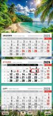 Kalendarz 2026 Trójdzielny Ekonomiczny JEDNOPLANSZOWY z przesuwnym okienkiem. Format 300/623mm. Główka z otworem wierconym . Dodatkowo nazwy miesiąca i dni tygodnia w języku Ukraińskim, Angielskim i Niemieckim. Kalendarium dodatkowo zawiera fazy księżyca i znaki zodiaku. Dużo miejsca do notowania, czytelne duże litery i cyfry. 12 kart do zrywania.