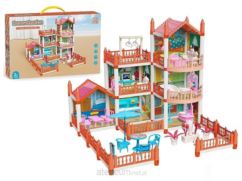 domek 2 piętrowy dla lalek 53x51,5x47cm, z wyposażeniem i ogrodzeniem; 45,5x30x11cm, Box
