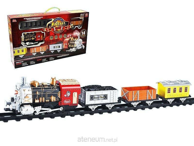 kolejka na baterie, 14 części, światło, dym z lokomotywy; 50x30x9cm, W/B