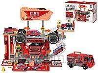 parking - baza straży pożarnej, metalowe pojazdy, 46 części, wym.rozłożonego 35x35x28cm; 31x20x14cm, Box