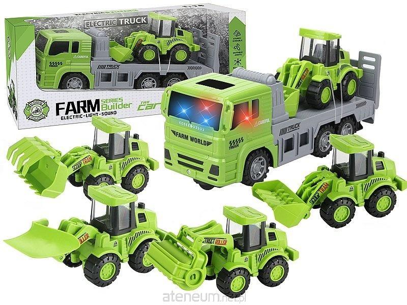auto z lawetą i pojazdem budowlanym, światło, dźwięk; 32x15x11cm, W/B