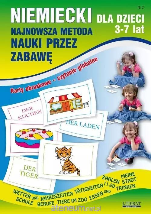 Niemiecki dla dzieci 3-7 lat to zaproszenie do wspólnej zabawy edukacyjnej z językiem niemieckim dla dzieci i rodziców. Proponowana forma czytania globalnego, czyli rozpoznawania całych słów, sprzyja przyswajaniu nowych słówek. Nasza książeczka opiera się na wykorzystaniu pamięci wzrokowej ? dziecko kojarzy konkretny obrazek ze słowem pisanym, wspomaga naturalną naukę języka od bardzo wczesnych lat (według najnowszych badań, im wcześniej i więcej dziecko przyswoi, tym lepiej), wykorzystuje naturalną ciekawość dziecka do zdobywania wiedzy i poznawania świata, wspomaga rozwój intelektualny ? poszerza słownictwo z różnych dziedzin, rozwija zdolności manualne dziecka poprzez kolorowanie i wycinanie. W zeszycie zamieszczono również słowniczek. Zeszyt zawiera następujące rozdziały: Wetter und Jahreszeiten, Taetigkeiten, Zahlen 11-20, Meine Stadt, Schule, Berufe, Tiere im Zoo, Essen und Trinken.