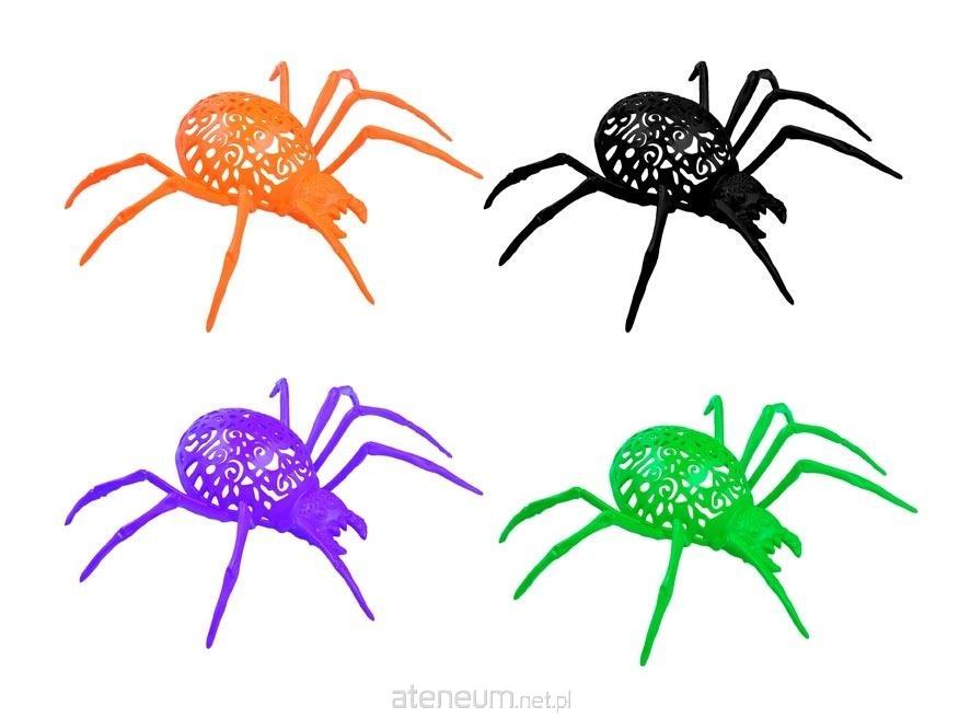 Karnawałowy dodatek - pająk plastikowy, mix kolorów, Doskonałe uzupełnienie każdej imprezy halloweeowej. Do użytku zarówno w pomieszczeniach, jak i na zewnątrz.