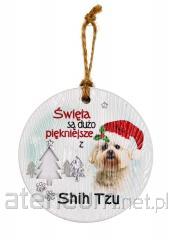 Zawieszka ceramiczna Boże Narodzenie Shih Tzu