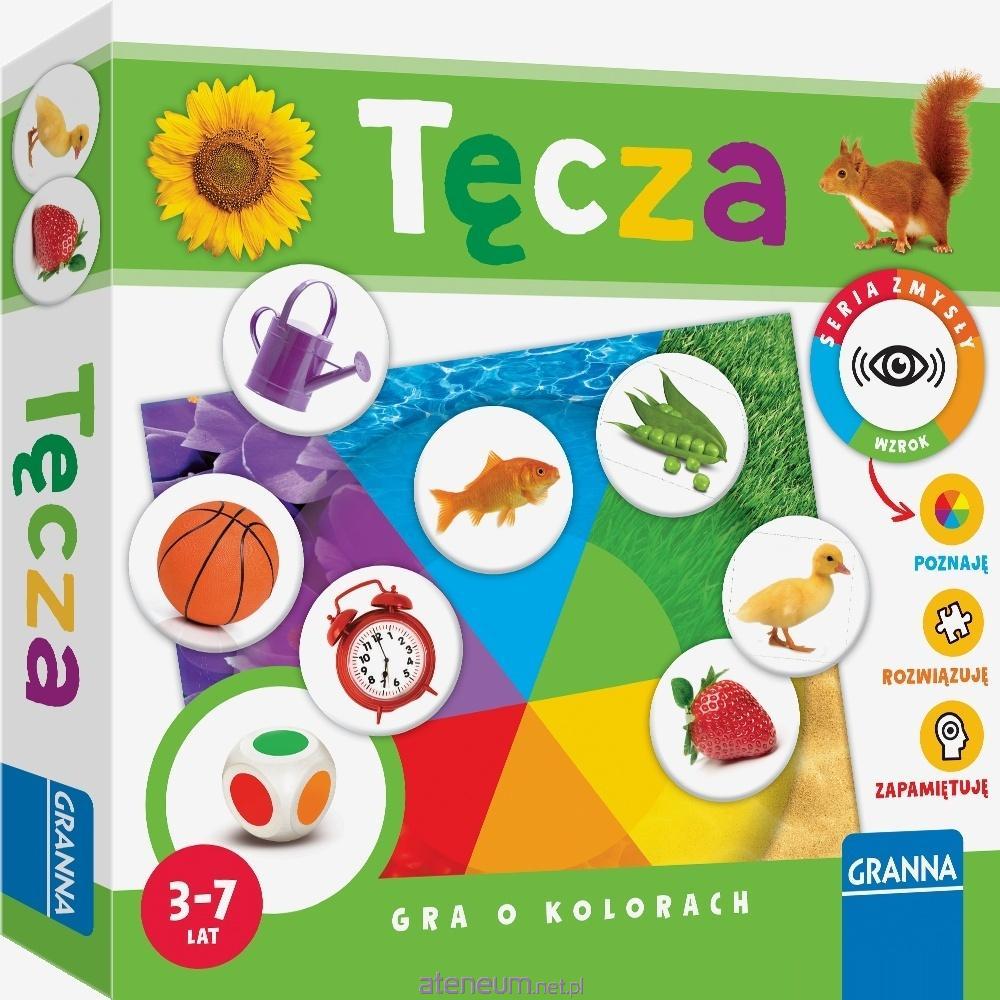 Gra Tęcza oferuje trzy różnorodne warianty rozgrywki, które wspierają rozwój dziecka. Układanka pomaga w nauce rozpoznawania i nazywania kolorów, podstawowa wersja gry wspiera ćwiczenie pamięci, a trudniejszy poziom stanowi doskonały trening koncentracji.