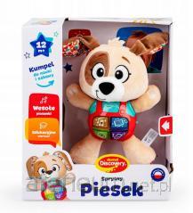 Słodziak na kółkach bawi dźwiękiem i światełkami! Jeżyk ze sznureczkiem do prowadzenia rączką, posiada na boku dwa aktywne przyciski, w kształcie grzybka i jabłuszka, które po naciśnięciu świecą, a także aktywują melodie oraz edukacyjne piosenki. Na drugim boku jeżyka znajduje się motylek, który podczas przesuwania zabawnie terkocze. Zwierzak wyposażony został w praktyczny przełącznik ON/OFF, umożliwiający wyłączenie jeżyka po zakończonej zabawie.