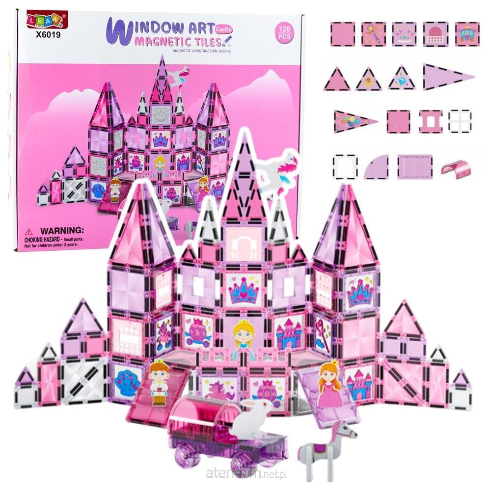 KLOCKI KONSTRUKCYJNE MAGNETYCZNE OKIENKA 126 ELEMENTÓW RÓŻOWE