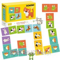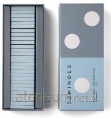 Mała wersja domina double 6 zawiera 28 klocków z czarnymi oczkami i wirującymi elementami i jest dostarczana w drewnianym pudełku z przesuwaną pokrywką. Wymiary klocków: 41 x 20 x 7 mm.
