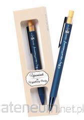 Metalowy, automatyczny długopis DYPLOMAT z nadrukiem BAD BOY z wielkim sercem - jako prezent na różne okazje dla chłopaka, nie tylko na Dzień Chłopaka. Długopis koloru czarnego z wymiennym wkładem typu zenith. Zapakowany w prezentowe etui.
