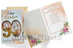Kartka jest bogato i różnorodnie zdobiona (zależnie od wzoru: metaliczna folia, lakier perłowy,