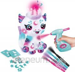 Stwórz 2 bransoletki, 4 diamentowe figurki z dżetami i użyj 3 pisaków w sprayu i szablonów, aby stworzyć najpiękniejsze, własnoręcznie wykonane kreacje Gabby z efektem pędzla.