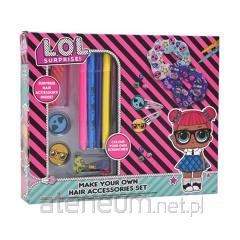 W zestawie znajduje się opaska z kocimi uszkami, zestaw biżuterii - naszyjnik, bransoletka i pierścionek z wisiorkiem przedstawiającym Gabi i kotka, różowy grzebyk z lusterkiem, trzy spinki z sercem i motywem Koci Domek Gabi oraz dwie dekoracyjne spinki z kokardą i sercem. Dodatkowo zestaw zawiera dziesięć elastycznych gumek w różnych kolorach, ozdobną grubą gumkę w zielonym kolorze z kocimi uszkami i różową gwiazdką oraz dwie plastikowe spinki.