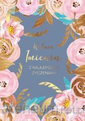 Karnet 2k. Klasyczny karnet na imieniny dla kobiety. Uszlachetniony wysokiej jakości hotstampingiem ( złocenie ). Karnet zawiera życzenia.