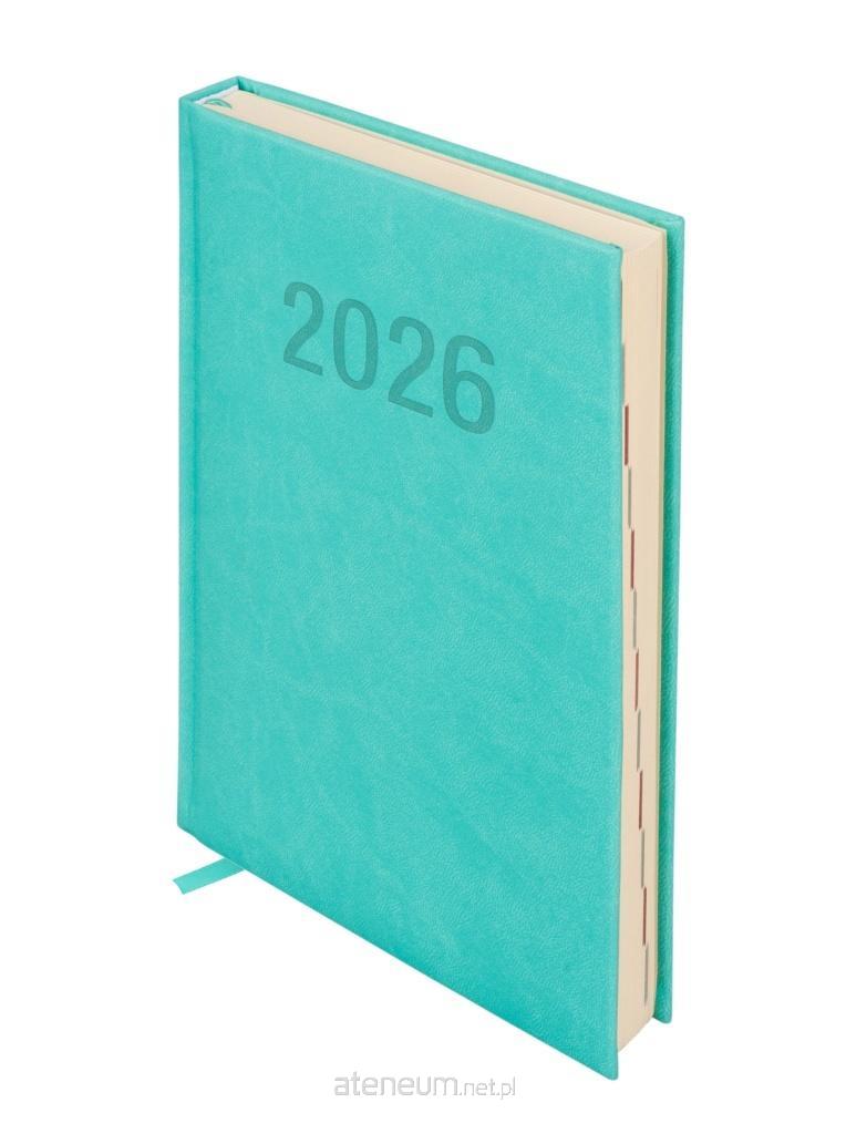 Kolekcja: Colorfix, format: A5, wymiary okładki: 203x142 mm, układ: dzień na stronie, ilość stron: 376, oprawa: twarda, zaokrąglone rogi: nie, materiał: skóra ekologiczna, gramatura papieru: 70g, kolor papieru: chamoise, dodatki: plan roczny, notatki,wstążka: w kolorze okładki, gumka zamykająca: nie, gumka na długopis: nie, wyklejka: chamoise, koperta: tak, dostępne kolory: czarny, czerwony, granatowy, liliowy, różowy, turkusowy