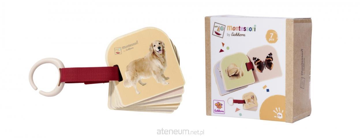 12-stronicowa książeczka ze zwierzętami, z ringiem, 7 elementów, 10 x 10 cm, FSC® 100%, drewno bukowe, plastik, 12m+