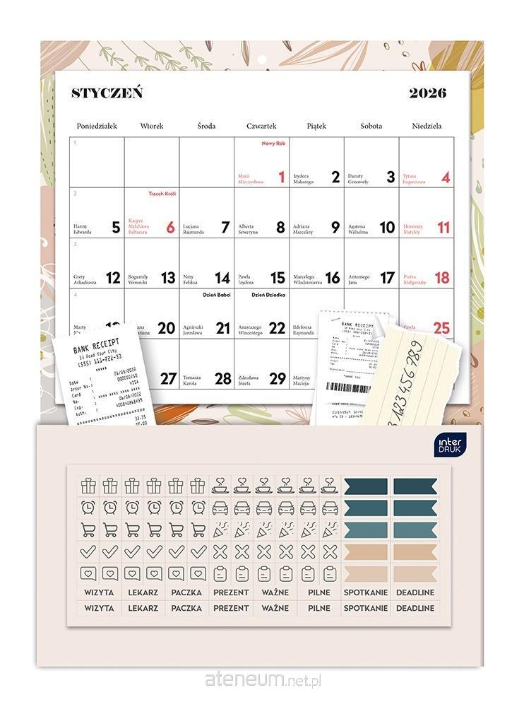 Kalendarz 2026 ścienny z kieszonką 22x31cm Bright