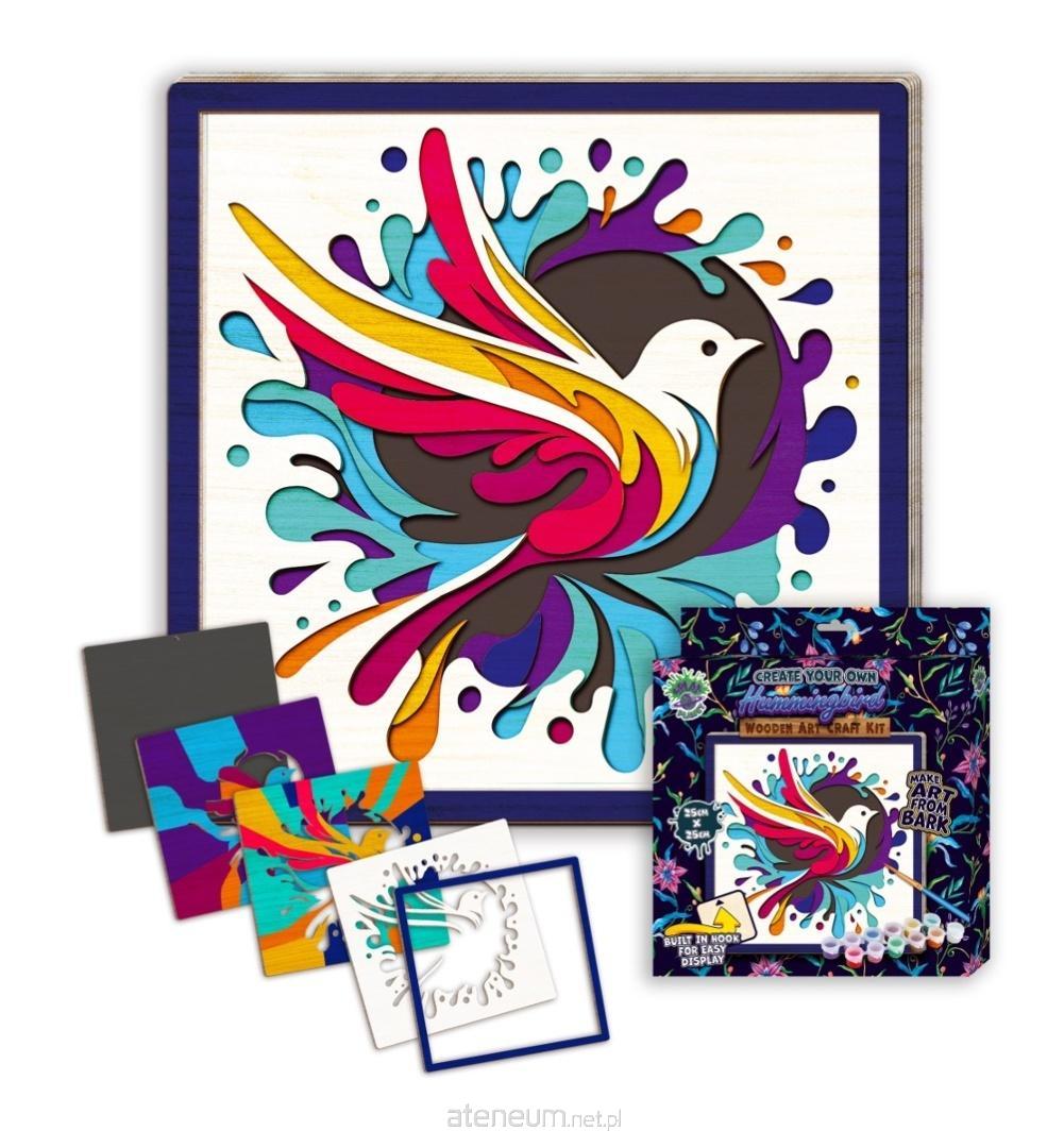 Zestawy do tworzenia obrazów z drewna są łatwe w wykonaniu i umożliwiają stworzenie trójwymiarowych prac, które można zawiesić na ścianie. Standardowy rozmiar to 25 cm x 25 cm. Zestaw zawiera 2 pędzle, farby, 5 drewnianych warstw oraz klej.