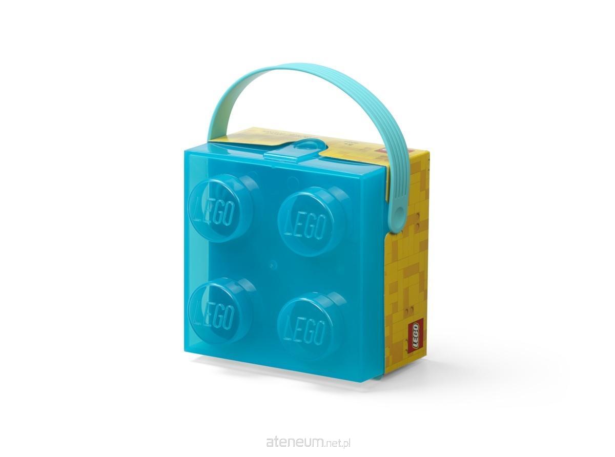 Pojemnik w kształcie klocka LEGO® z rączką "czwórka" w kolorze niebieskim, transparentny. Pojemność 2,15 l, dopuszczony do kontaktu z żywnością.