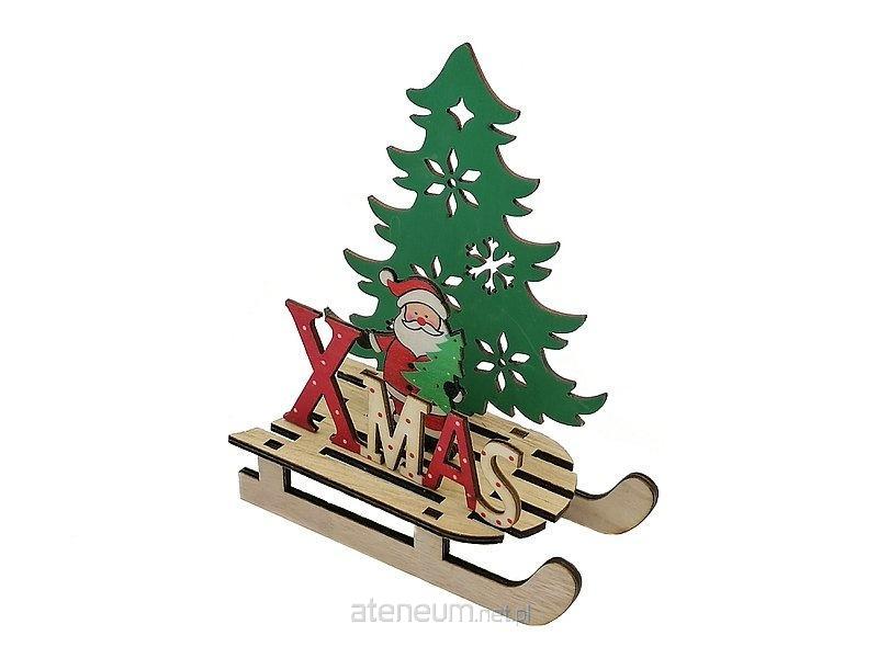Dekoracja świąteczna drewniana bałwanek na saniach