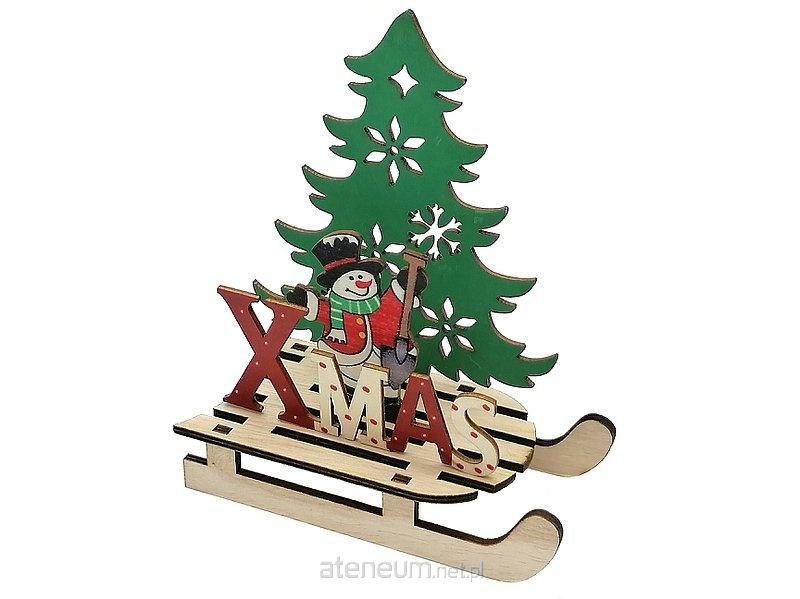 Dekoracja świąteczna drewniana bałwanek na saniach