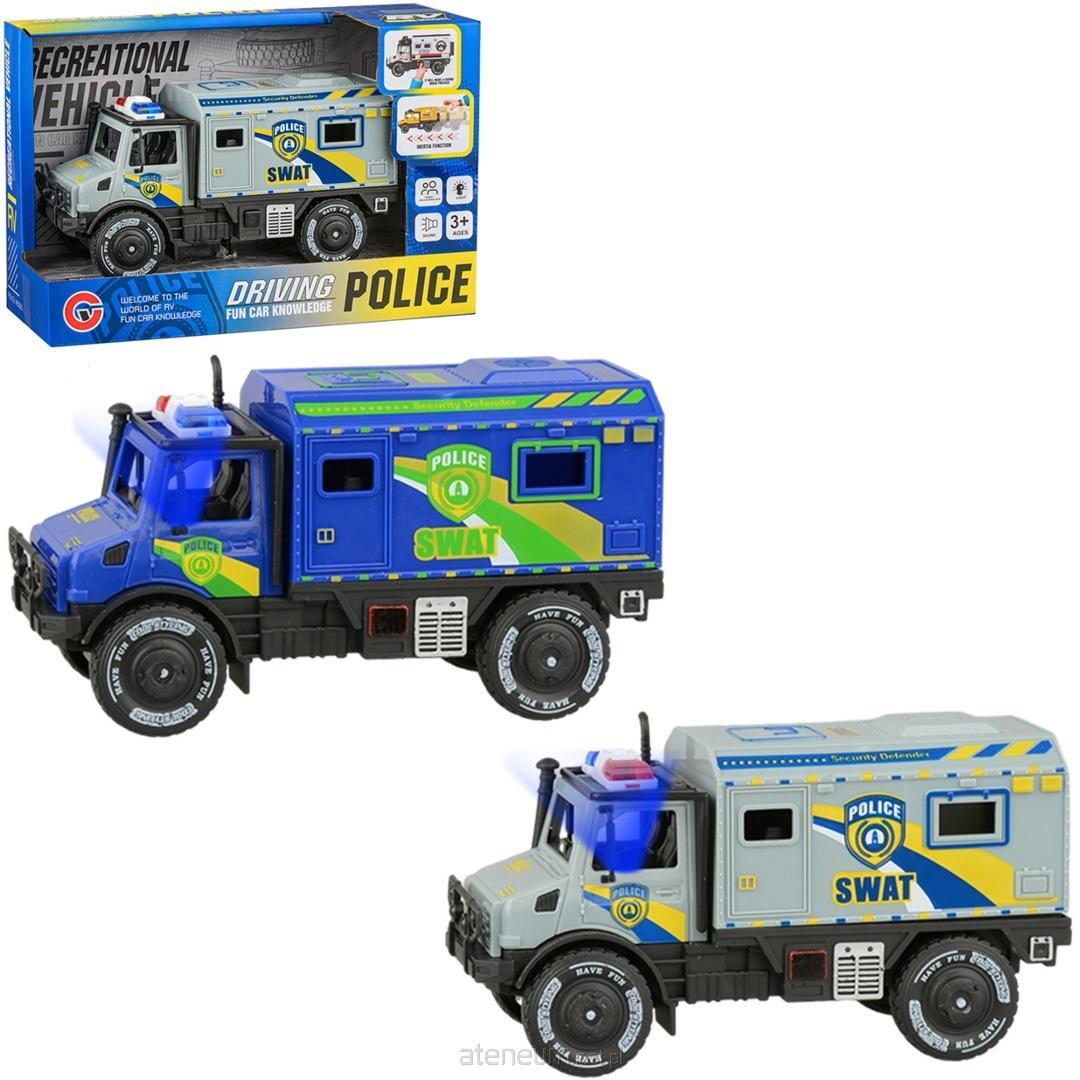 Przedstawiamy Pojazd Policyjny S.W.A.T. "RECREATIONAL VEHICLE", opancerzony wóz akcji, który jest niezbędny w każdej poważnej policyjnej misji! To idealna zabawka dla małych miłośników służb mundurowych i dynamicznej, pełnej wyobraźni zabawy.