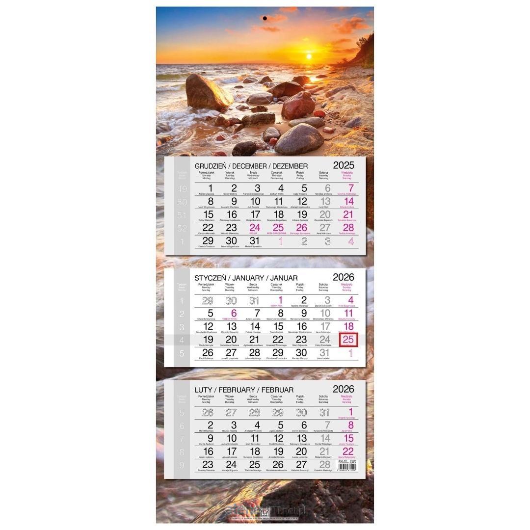 * kalendarz ścienny, trójdzielny z główką płaską z zadrukiem na całych pleckach