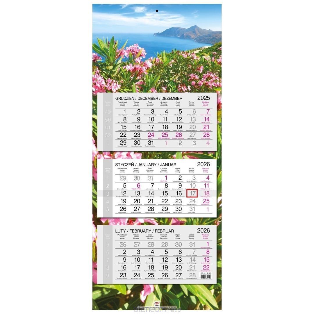 * kalendarz ścienny, trójdzielny z główką płaską z zadrukiem na całych pleckach