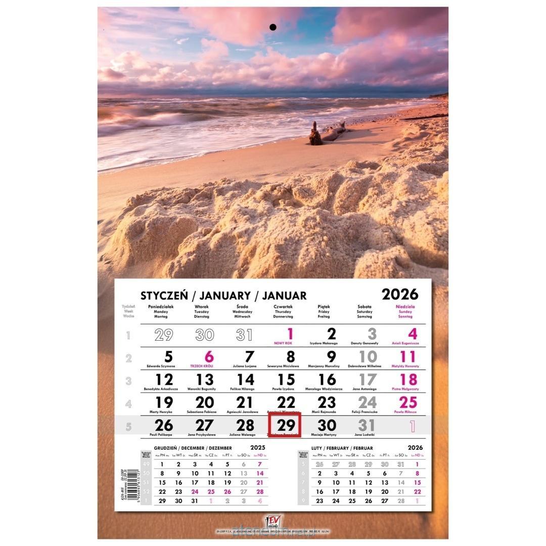 * kalendarz ścienny, jednodzielny z główką płaską z zadrukiem na całych pleckach