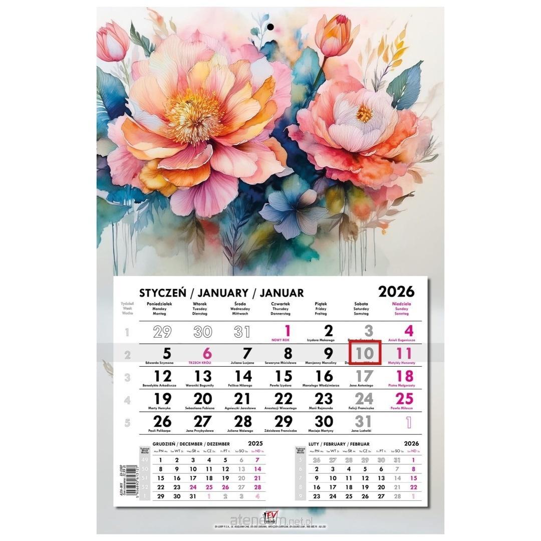 * kalendarz ścienny, jednodzielny z główką płaską z zadrukiem na całych pleckach
