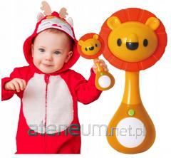 Wiek: 3m+ Interaktywna grzechotka 6 do wyboru: kurka, żyrafka, koala, kotek, lew, króliczek Wyposażona w 3 tryby, które można przełączać przy pomocy przycisku umieszczonego na brzuszku zabawki. Tryb 1 Po włączeniu zabawki odtwarzane są wesołe melodie Podczas grania melodii po potrząśnięciu w dobywają się delikatny dźwięk grzechotania Tryb 2 Przy potrząsaniu grzechotki wydobywają się krótkie dźwięki tj. śpiew ptaków czy śmiech dziecka. Dodatkowo brzuszek króliczka świeci w różnych kolorach Tryb 3 Ponownie odtwarzane są melodie podczas których przy potrząsaniu wydobywają się tony utworu. Odgłosy wydobywające się z grzechotki są przyjemne dla ucha. Tryby zabawy zmienia się guziczkiem umieszczonym na brzuszku zwierzątka. Gdy zabawka nie jest używana przypomina o sobie dźwiękiem.